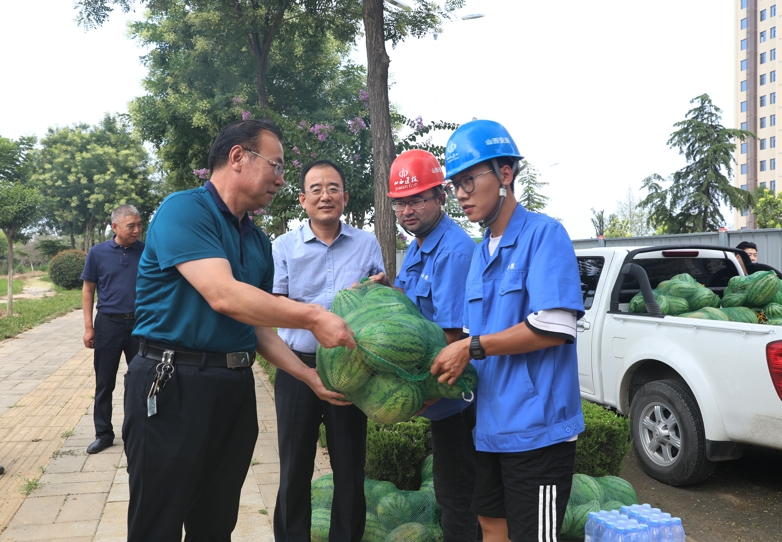 7月16日,盛夏初伏,公司黨委書記、董事長(zhǎng)馬福森帶領(lǐng)班子成員深入工程工地、維,F(xiàn)場(chǎng)、管材生產(chǎn)一線,看望慰問奮戰(zhàn)在高溫下的一線員工們,向大家表示親切的慰問和崇高的敬意,同時(shí)給大家?guī)チ讼募痉朗罱禍仄罚瑤ス军h委領(lǐng)導(dǎo)的關(guān)懷。